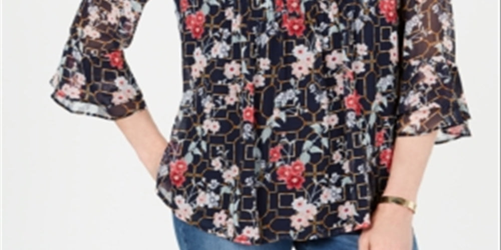 Charter Club|estilo; top|ocasião; coquetel|tamanho; s|material; poliéster|cor; azul-marinho|floral
