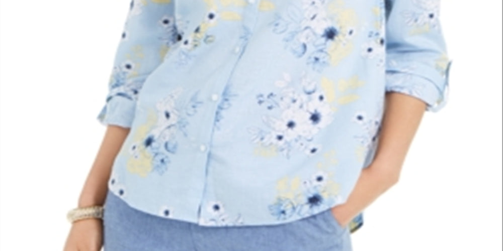 Camisa feminina Charter Club com estampa floral em mistura de linho, azul, tamanho XS