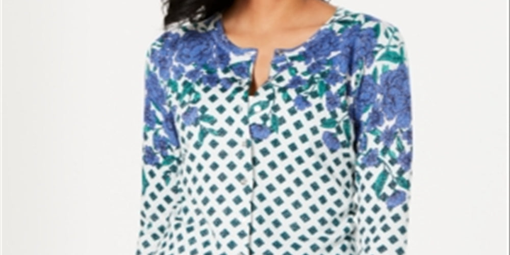 Cardigan feminino com estampa floral brilhante Charter Club, branco/verde, tamanho médio