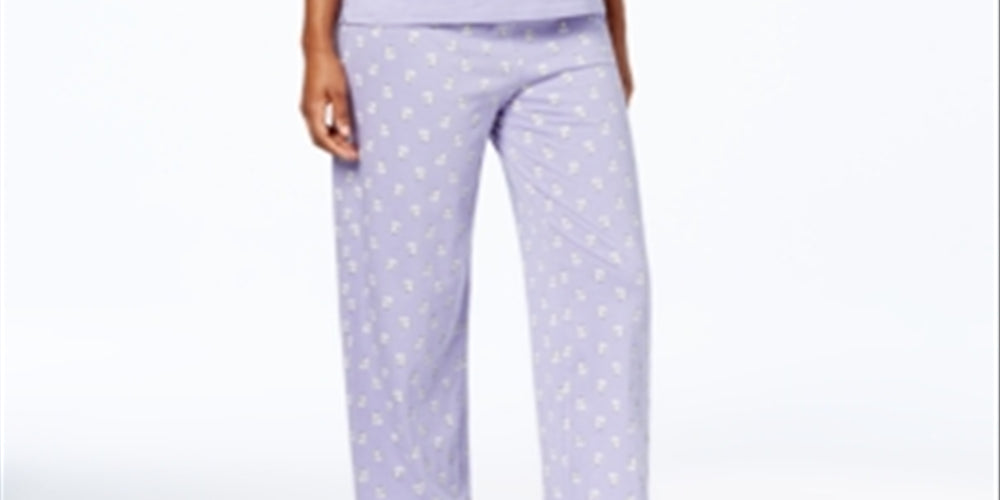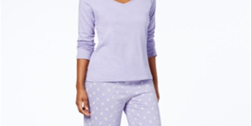 Conjunto de pijama feminino Charter Club com blusa gráfica e calça estampada, roxo, tamanho 2XL