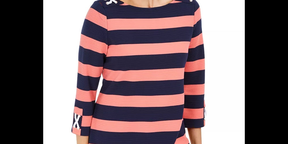 Decote canoa | Ilhós rendados nos ombros e punhos | Mangas 3/4 | Poliéster/rayon/elastano