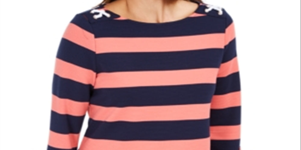 Top listrado feminino Charter Club com acabamento em ilhós, vermelho, tamanho XX-G