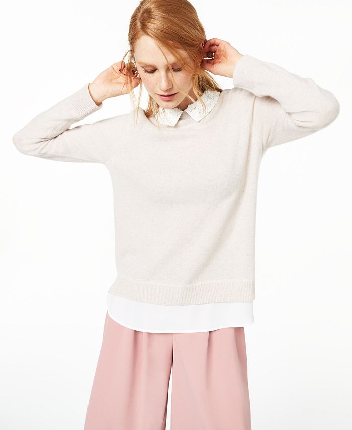 Suéter de cashmere feminino Charter Club com aparência em camadas, marrom, tamanho X-S
