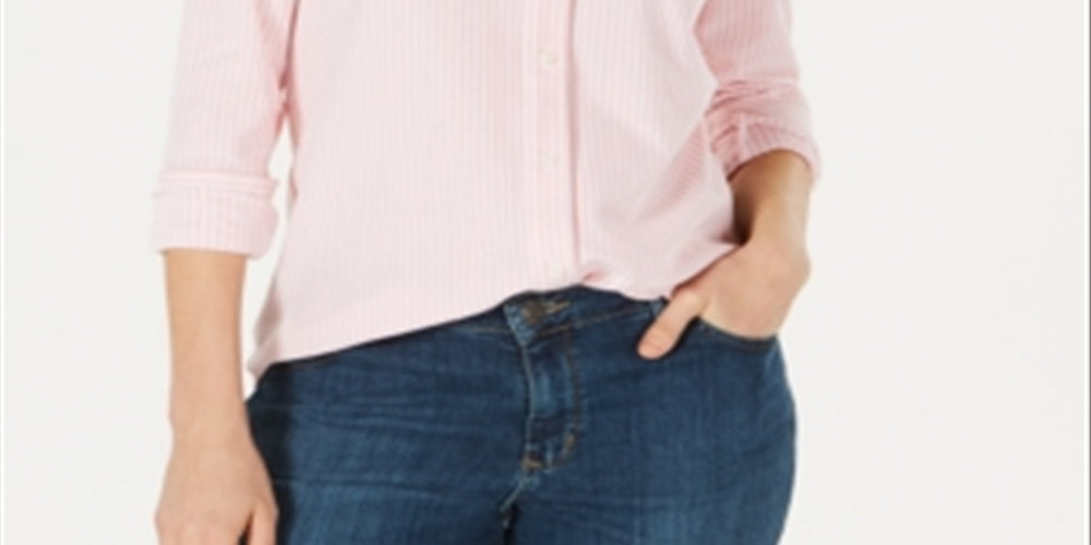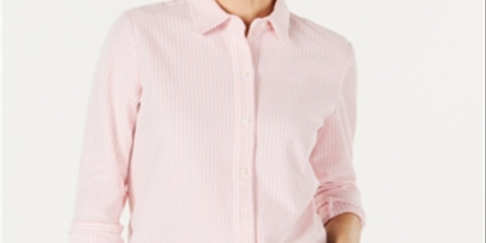 Charter Club Blusa feminina de manga comprida com botões, rosa, tamanho médio