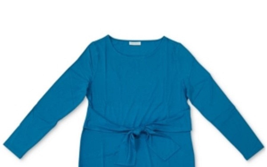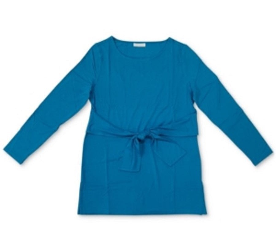 Charter Club Top feminino de manga comprida com amarração na cintura Dreamy Blue, tamanho X-G