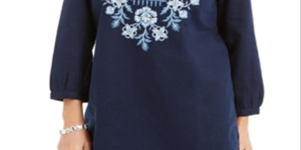 túnica de linho com bordados metálicos Charter Club | roupas femininas - tops