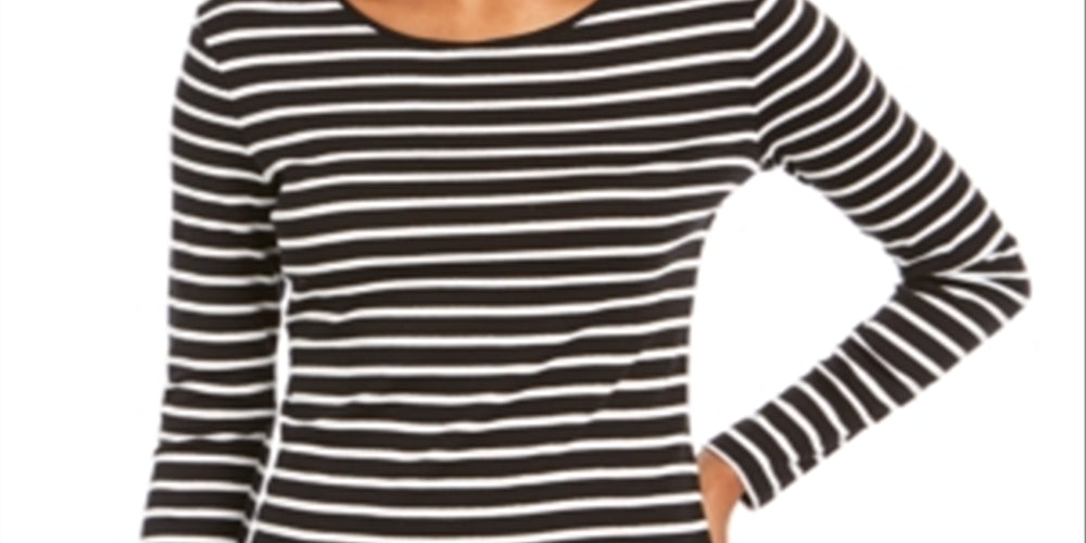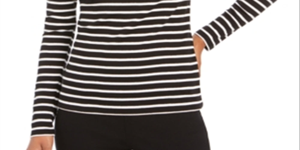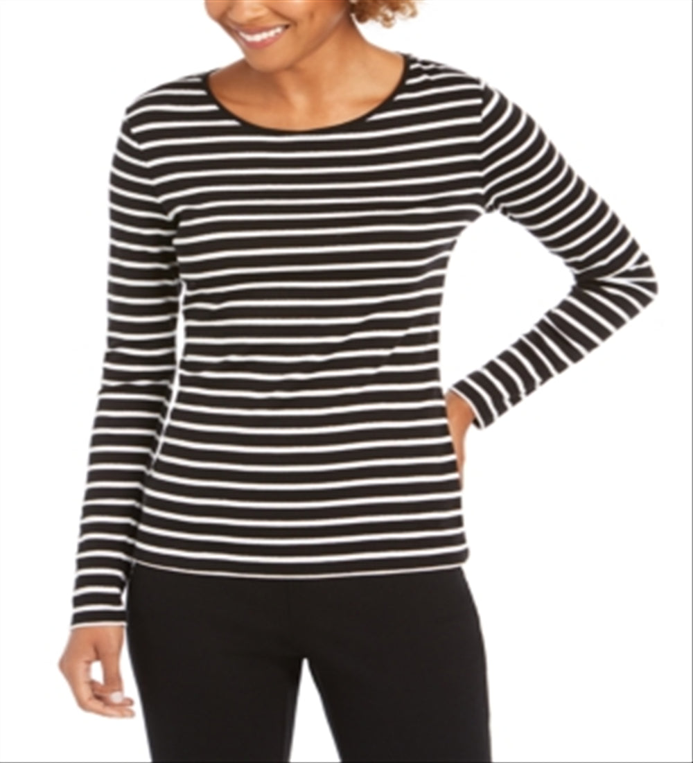 Top listrado metálico feminino Charter Club, preto, tamanho XX-G