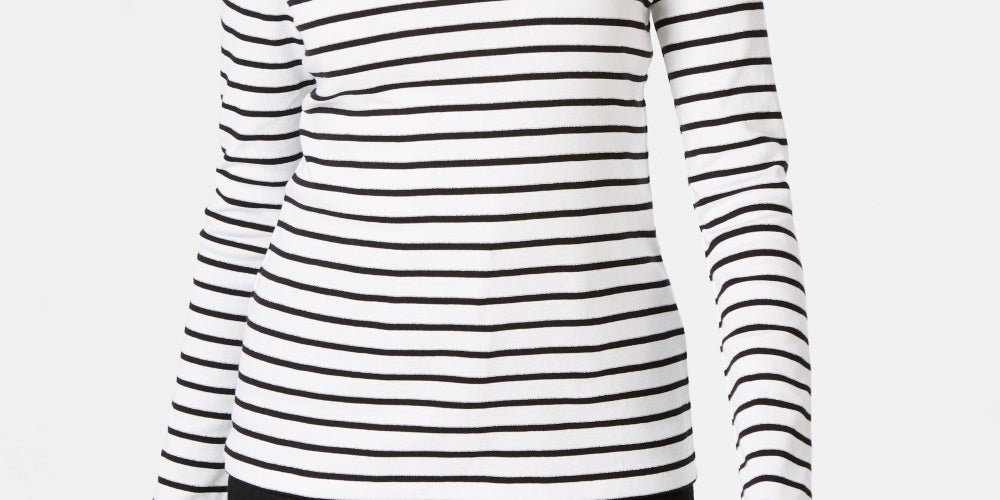Charter Club Top feminino listrado metálico, branco, tamanho extrapequeno