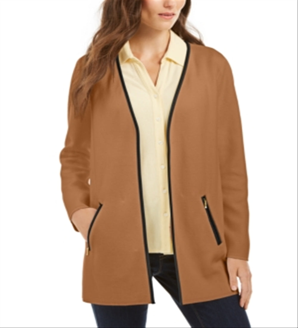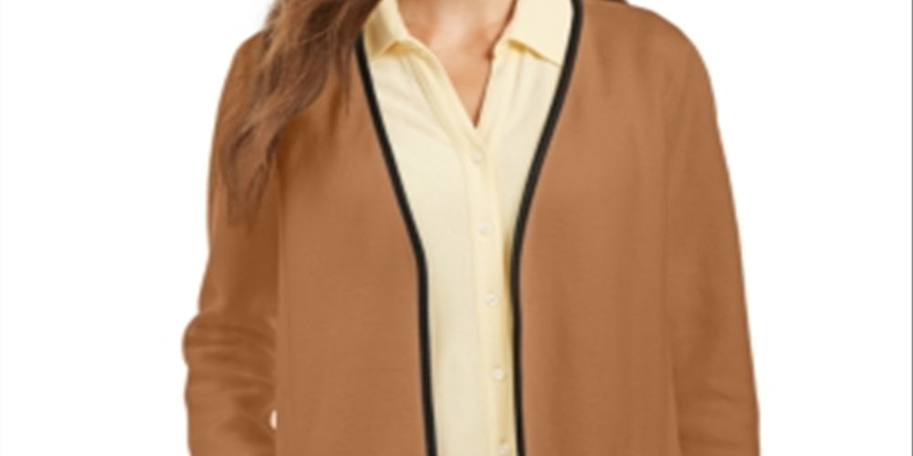 Cardigan feminino Charter Club Milano de algodão com frente aberta, marrom, tamanho pequeno