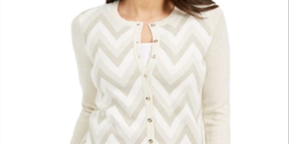 Adicione um toque de elegância ao dia a dia com este pequeno cardigan do Charter Club | detalhes metálicos e uma malha chevron chique elevam esta peça clássica