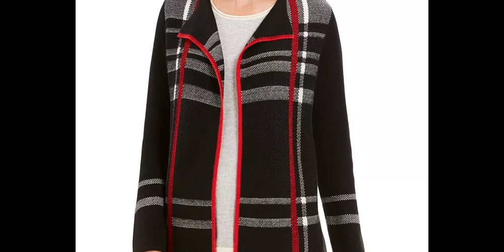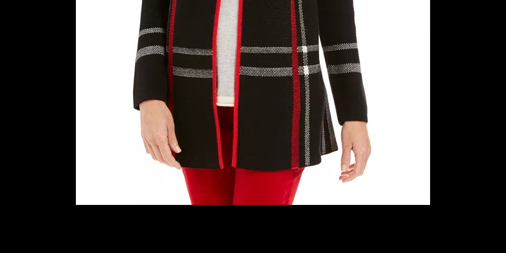 Ajuste relaxado; aprox. 28 de comprimento | Projetado para se ajustar e valorizar pessoas de 1,62 m ou menos | Decote e frente abertos; sem fecho | Nylon/acrílico/lã | Lavável à máquina