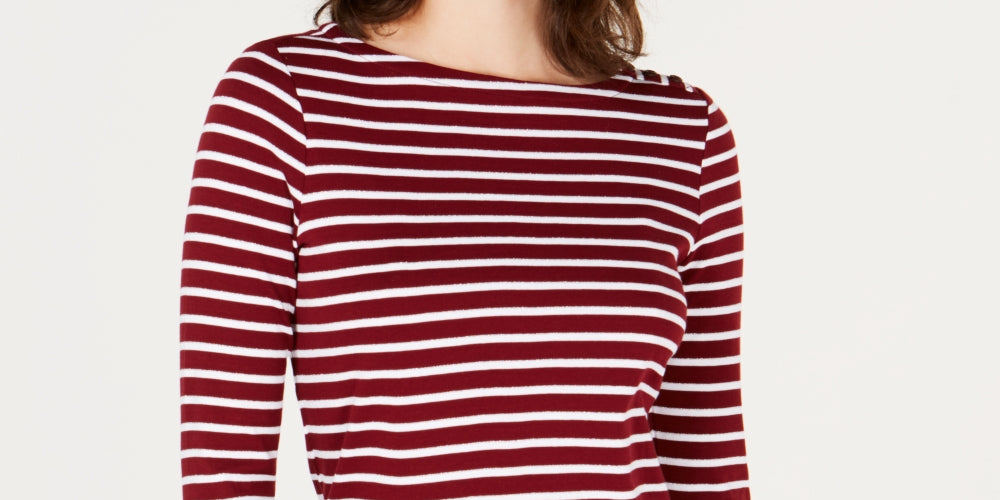 Decote canoa | Detalhes de botões nos ombros | Mangas 3/4 | Acabamento no quadril | Projetado para se ajustar e valorizar pessoas de 1,62 m ou menos