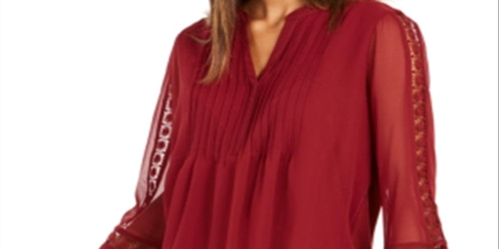 Charter Club feminino, blusa curta com manga transparente e pregas, vermelho, tamanho pequeno G