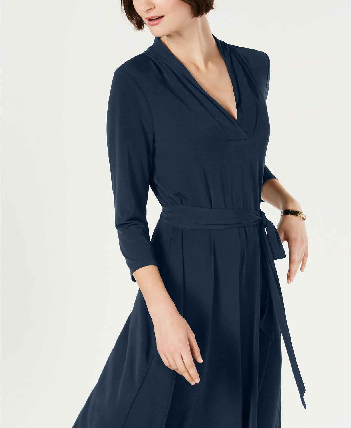 Vestido midi liso pequeno feminino Charter Club, azul marinho, tamanho grande