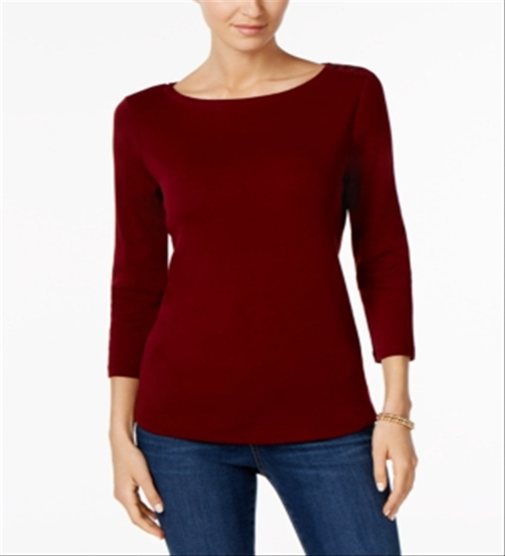 Charter Club Top feminino de algodão Pima com decote canoa e botões, tamanho vermelho -GG