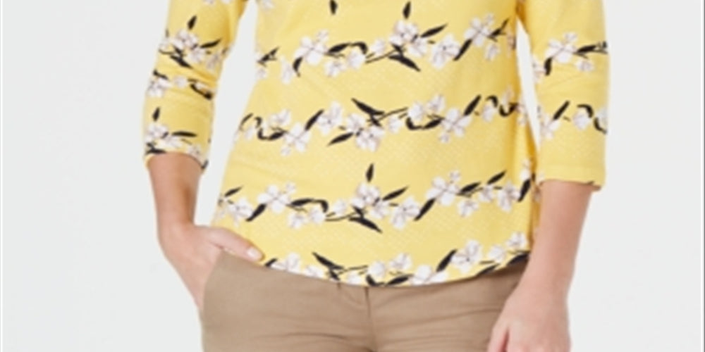 Camiseta feminina Charter Club de algodão Pima com estampa de botões e ombros, tamanho PP, amarela