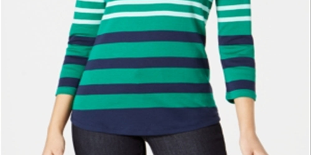 Blusa feminina Charter Club de algodão Pima com listras e botões nos ombros - Verde Killala Combo Verde Tamanho XS