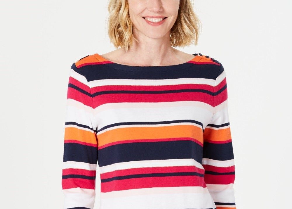 Charter Club Blusa feminina de algodão Pima com botões e listras, rosa, tamanho XX-G