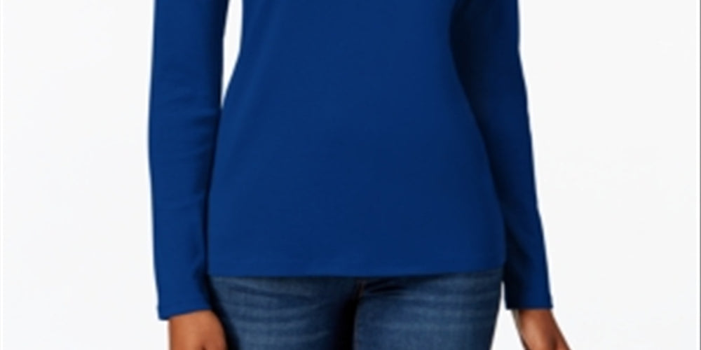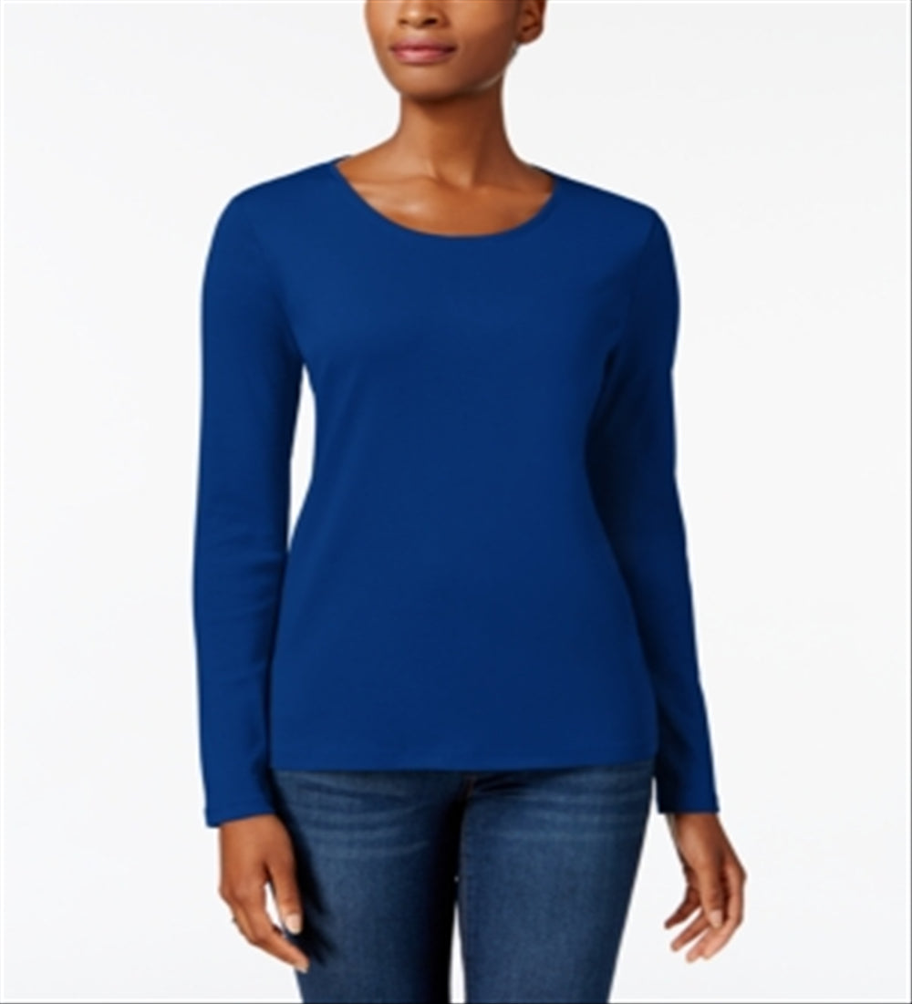 Camiseta feminina de manga comprida de algodão Pima Charter Club, azul, tamanho XX-G