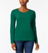 Camiseta feminina de manga comprida em algodão Pima Charter Club, verde, tamanho pequeno