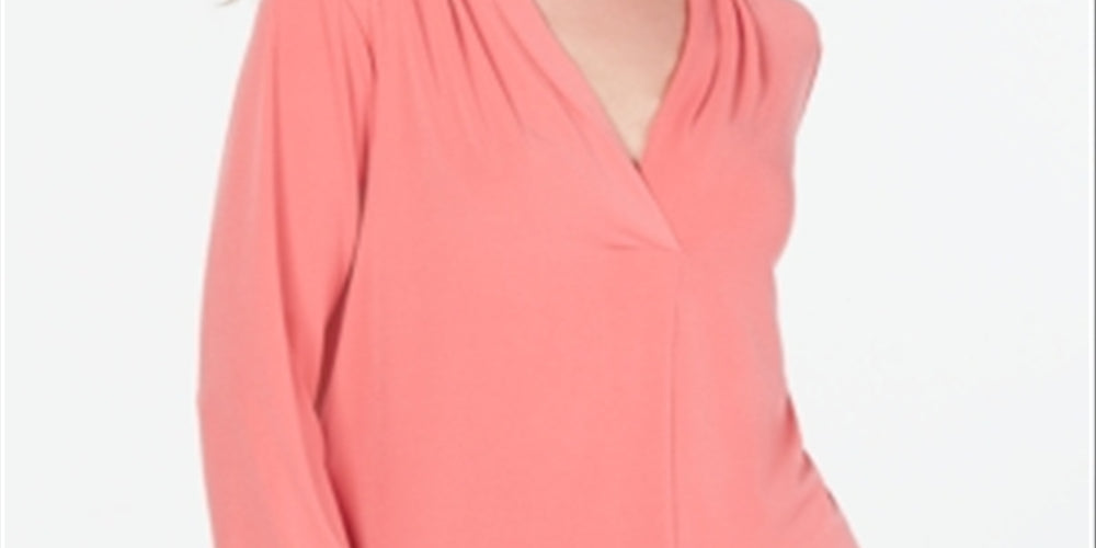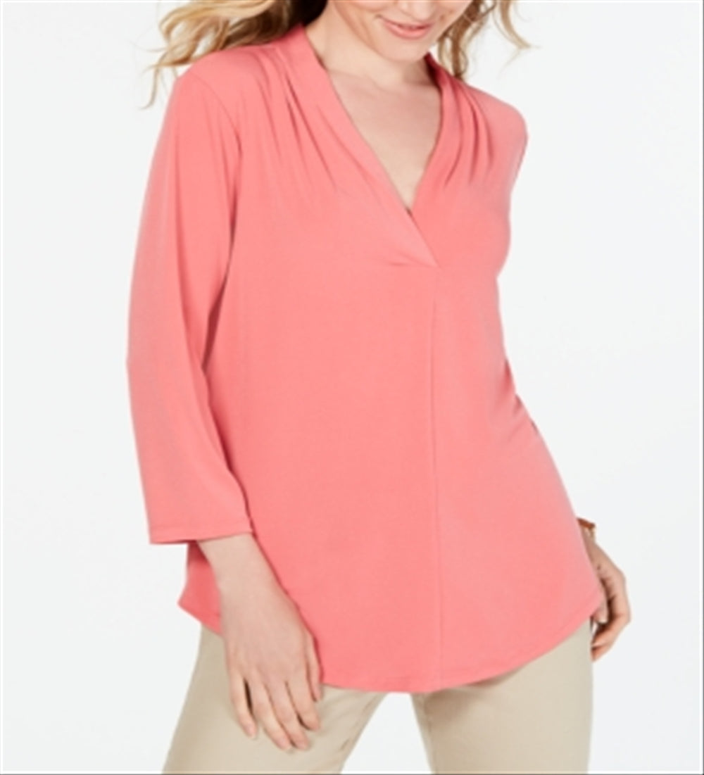 Top feminino Charter Club com decote plissado e manga 3/4, rosa, tamanho pequeno médio