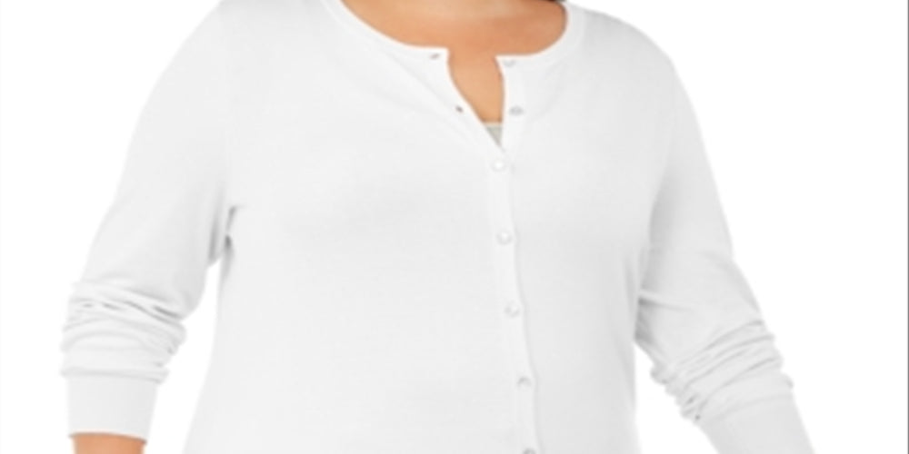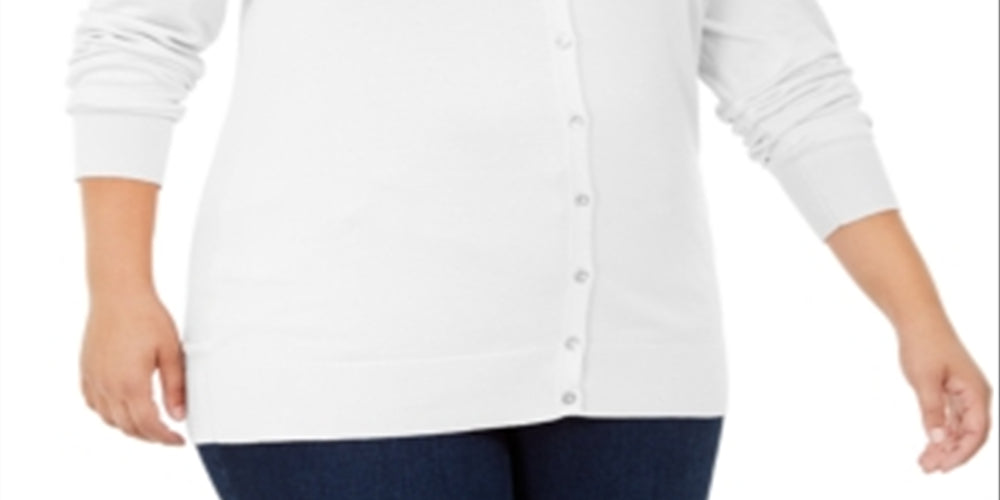Cardigan feminino plus size com gola redonda e manga comprida Charter Club, branco, tamanho XXXL