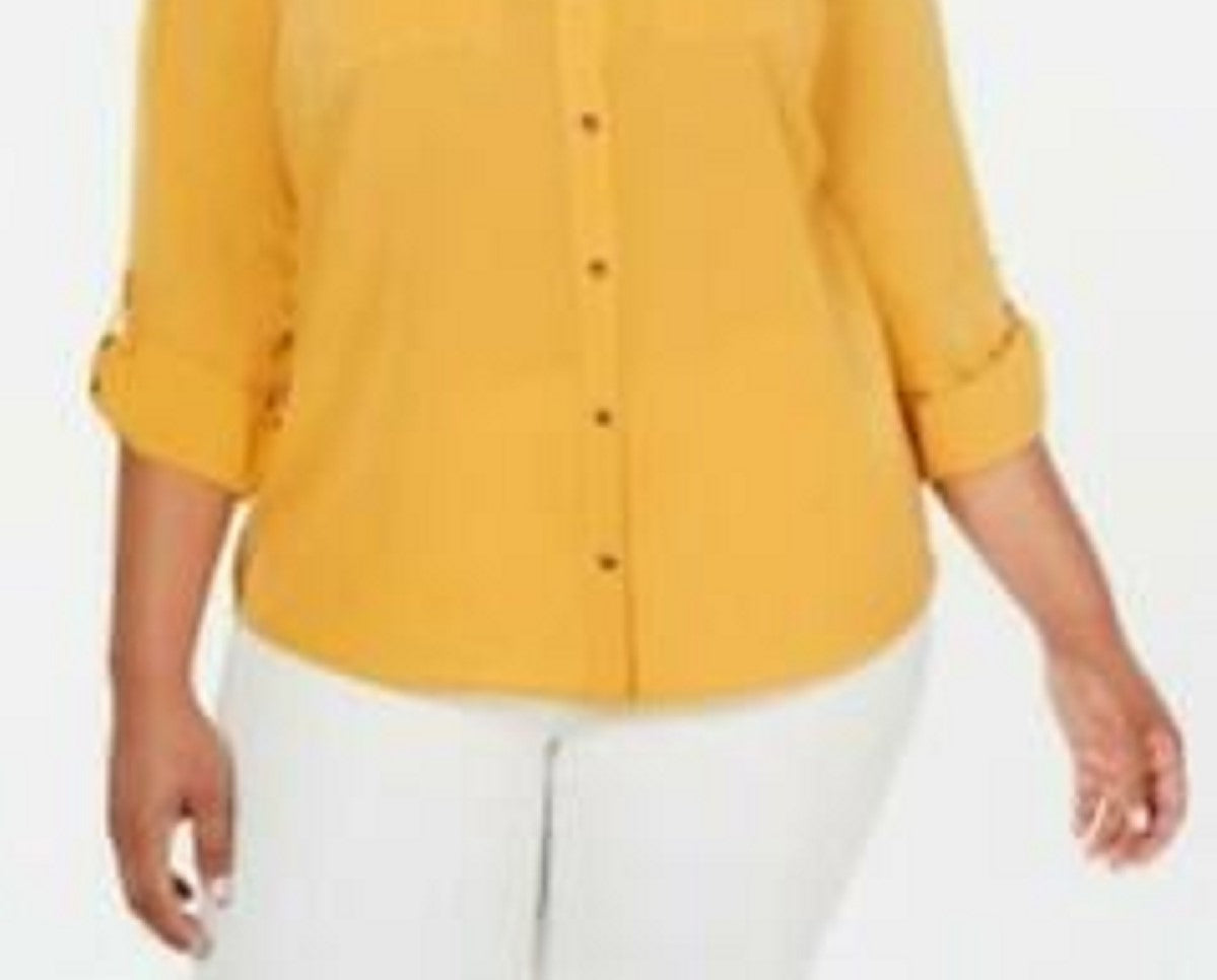 Camisa feminina plus size com botões frontais Charter Club, dourada, tamanho 2X