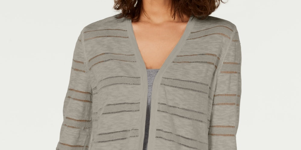 Ajuste relaxado; atinge o quadril; aprox. 24 de comprimento | Devido ao tamanho generoso; sugerimos um tamanho menor para um ajuste perfeito | Decote e frente abertos; sem fecho | Listras Pointelle por toda parte