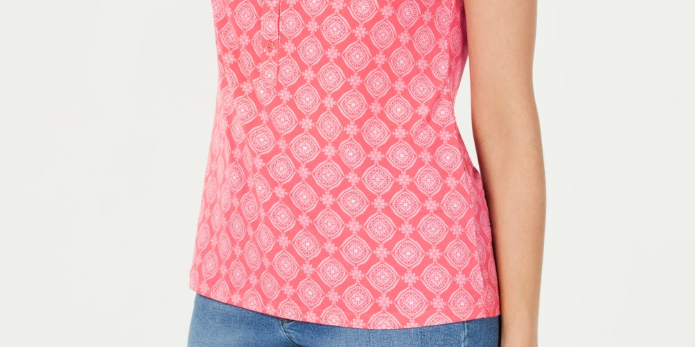 Camisa polo feminina estampada Charter Club com manga curta, rosa, tamanho extragrande