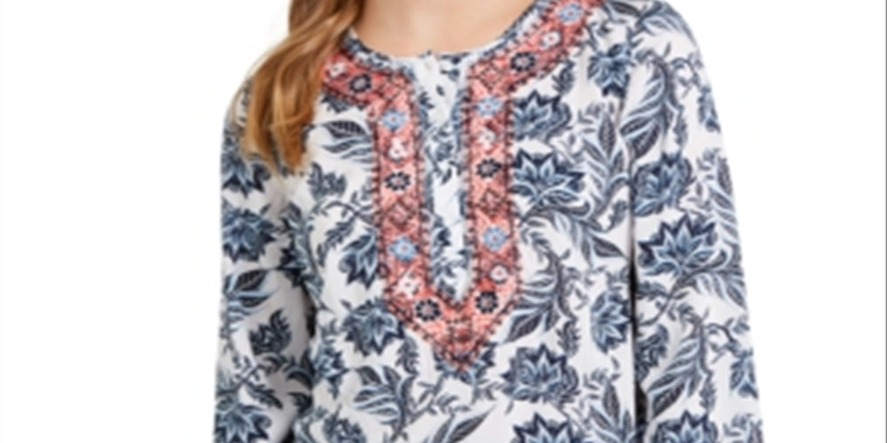 Túnica feminina bordada estampada Charter Club, branca, tamanho pequeno