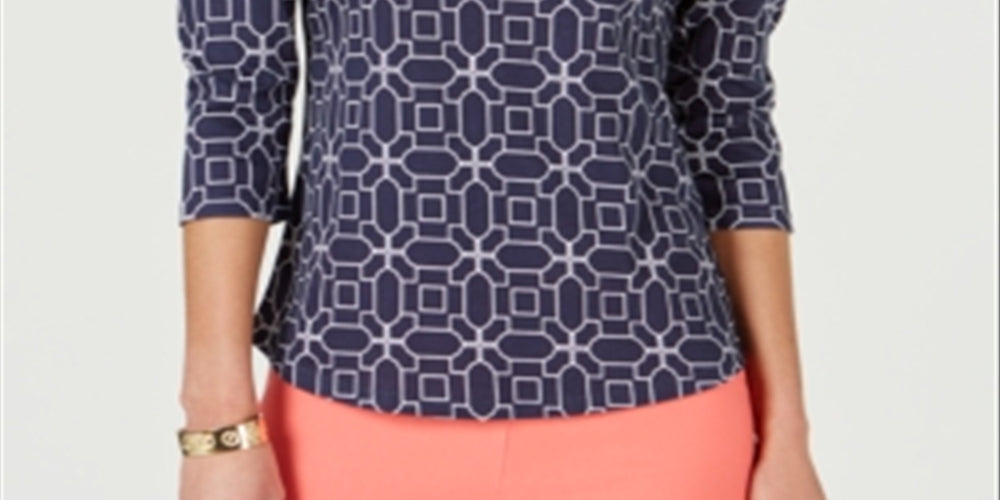Charter Club Blusa Estampada Feminina Azul Tamanho Pequeno Médio