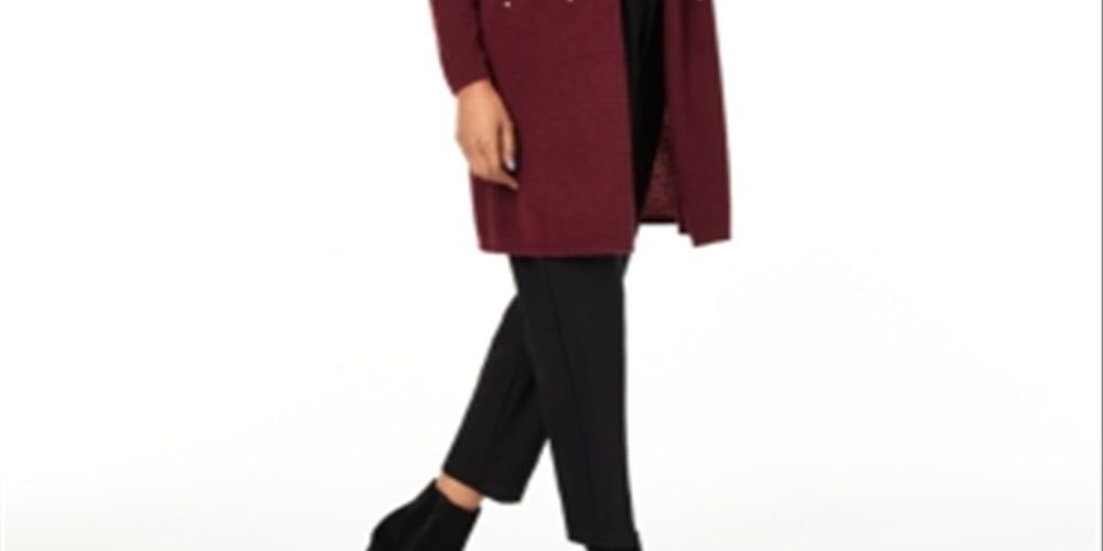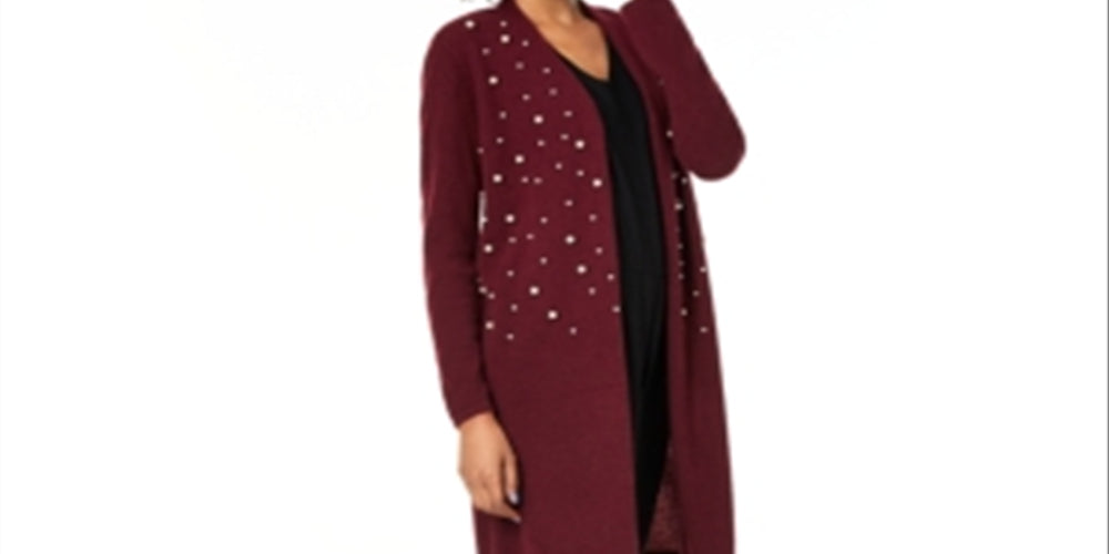 Cardigan feminino Charter Club Pure Cashmere com detalhes em vermelho, tamanho G