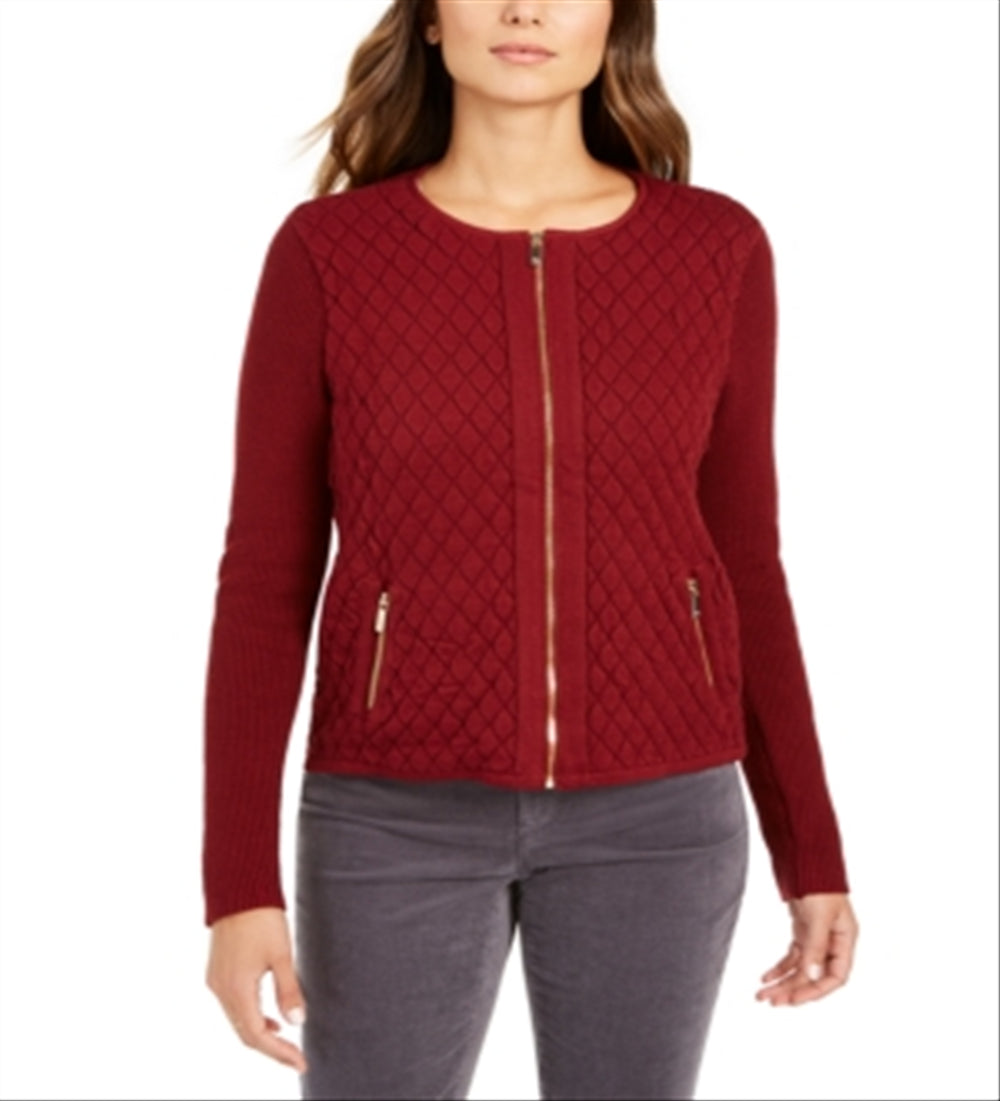 Perfeito para estilo extra e aquecimento | esta jaqueta de suéter Charter Club apresenta um padrão de malha diamante no corpo e mangas caneladas