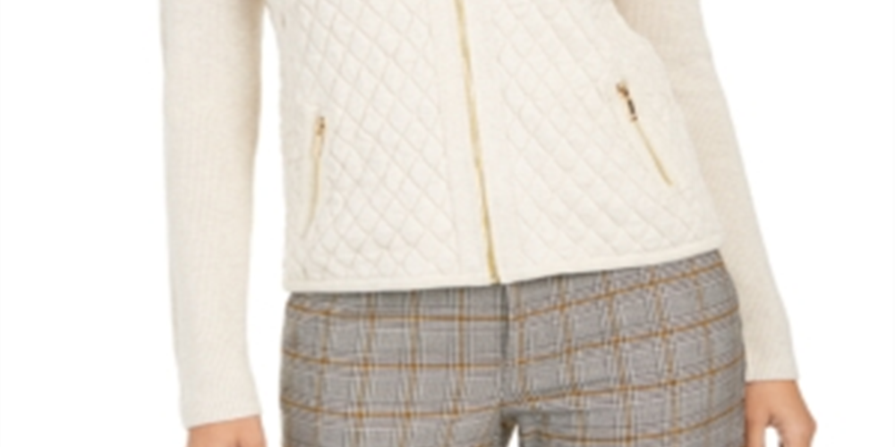 Jaqueta feminina acolchoada Charter Club, branca, tamanho X-S