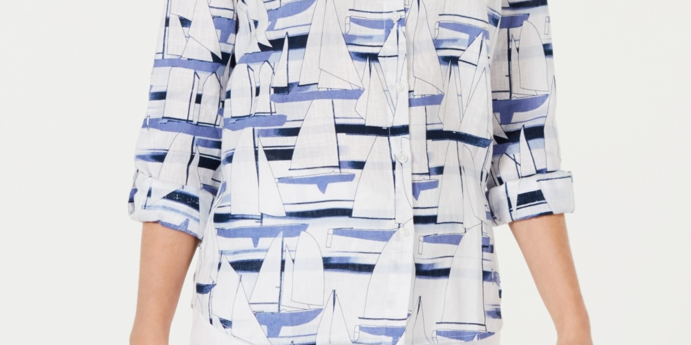 Camisa feminina com estampa de veleiro Charter Club, branca, tamanho médio