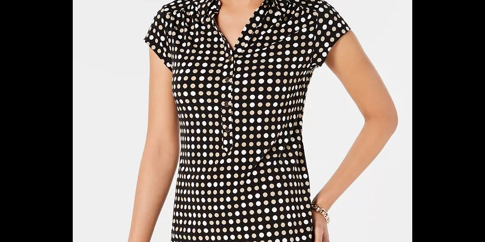 Ajuste relaxado; atinge o quadril; aprox. 25-1/2 de comprimento | Devido ao tamanho generoso; sugerimos um tamanho menor para um ajuste perfeito | Gola pontuda com detalhe de botão | Franzido nos ombros