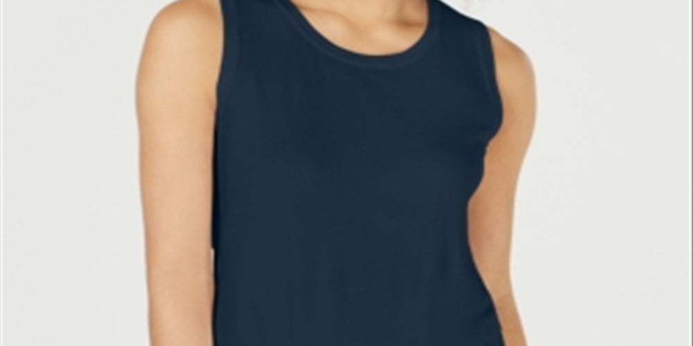 Suéter feminino sem mangas com gola redonda Charter Club, azul, tamanho grande