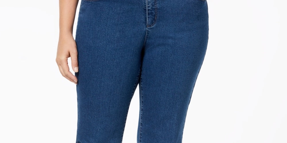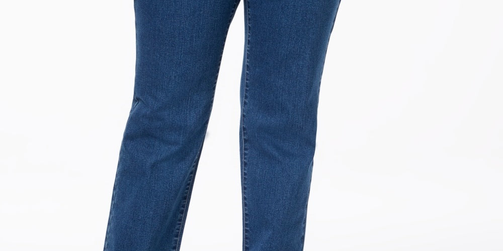Cintura média: o cós fica abaixo da cintura natural | Corte reto nos quadris e coxas | Perna reta | Painel de controle da barriga | Braguilha com zíper e fecho de botão; passantes para cinto | Estilo clássico de cinco bolsos