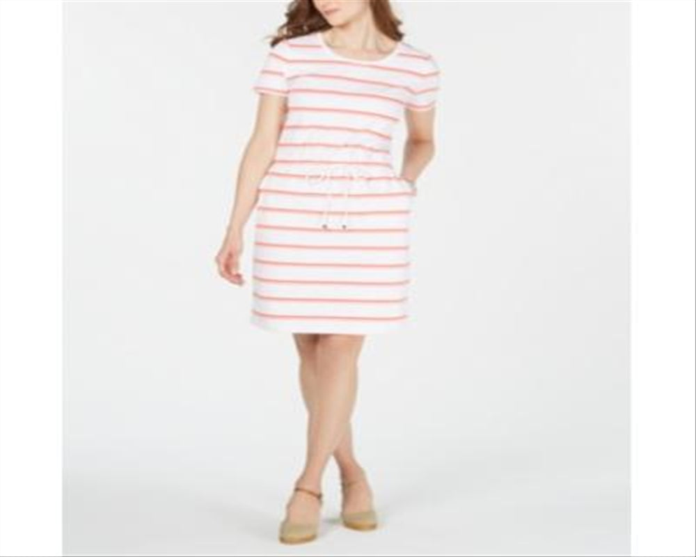 O Charter Club acrescenta um visual divertido e descontraído ao seu estilo casual com este vestido listrado de gola redonda | finalizado com cordão na cintura e bolsos nas laterais