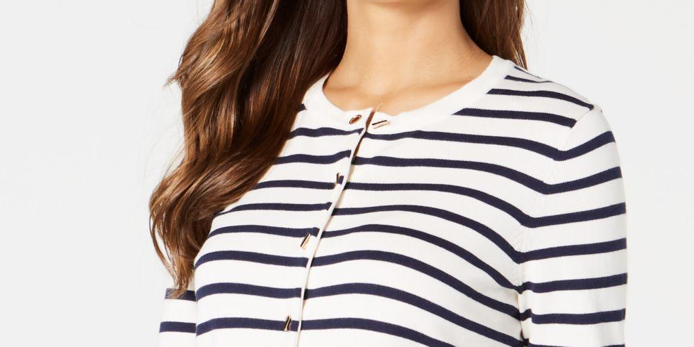 Cardigan feminino listrado com ilhós Charter Club, branco, tamanho XXG