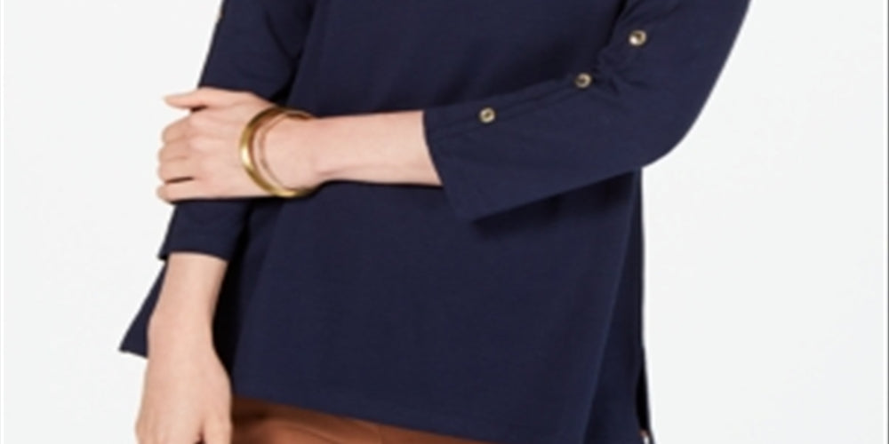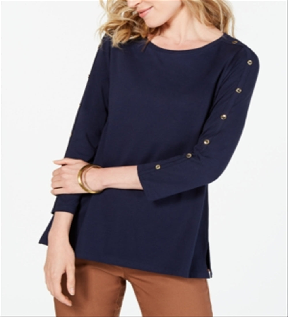 Feito em algodão Supima supermacio, este top Charter Club apresenta um elegante decote tipo barco e mangas 3/4 adornadas
