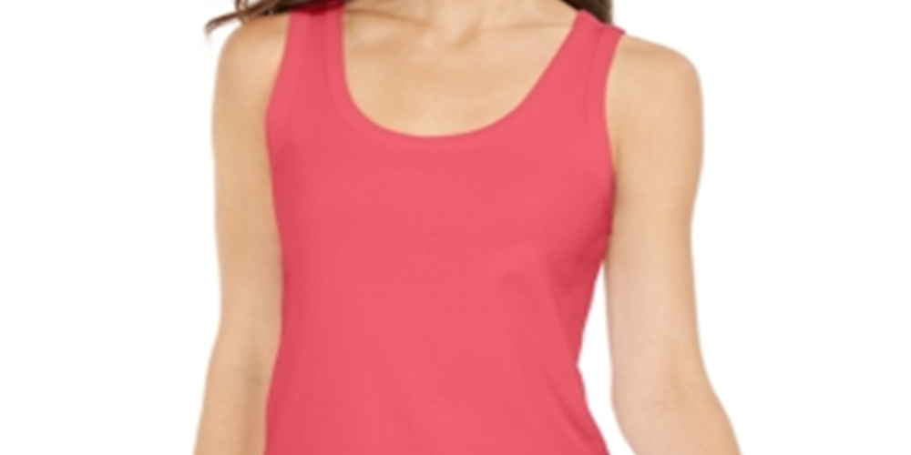 Regata feminina Charter Club Supima Cotton com decote redondo, vermelha, tamanho médio