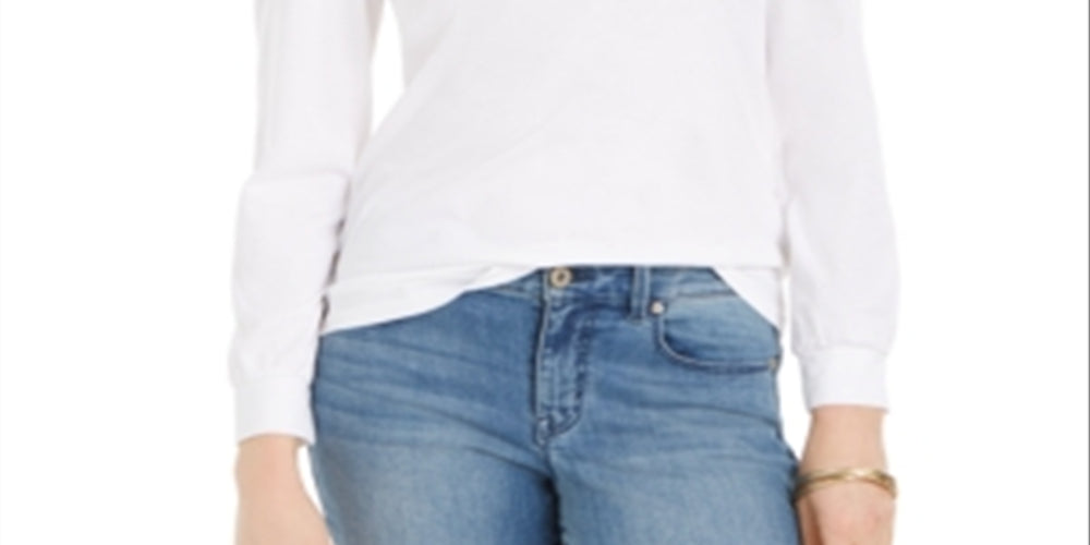 Charter Club Supima Puff-Sleeve Top Feminino Branco Tamanho XS