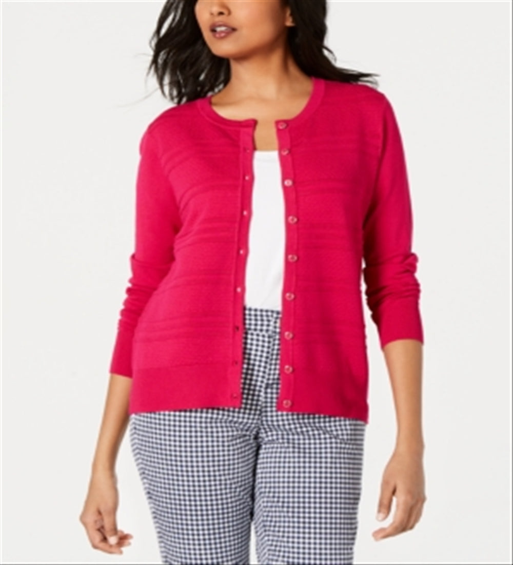 Uma das silhuetas mais confiáveis da moda | este cardigan clássico da Charter Club é estilizado com listras texturizadas para uma atualização sutil
