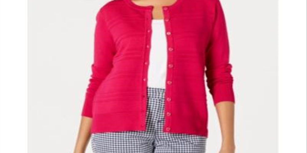 listras texturizadas adicionam uma dimensão lisonjeira ao cardigan clássico do Charter Club