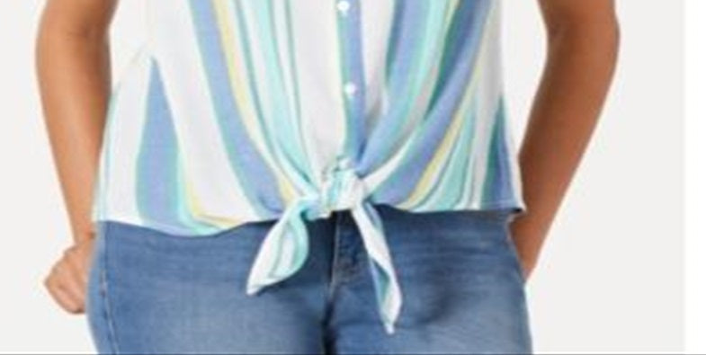 Charter Club Blusa feminina com botões e gola sem mangas, branca, tamanho extragrande