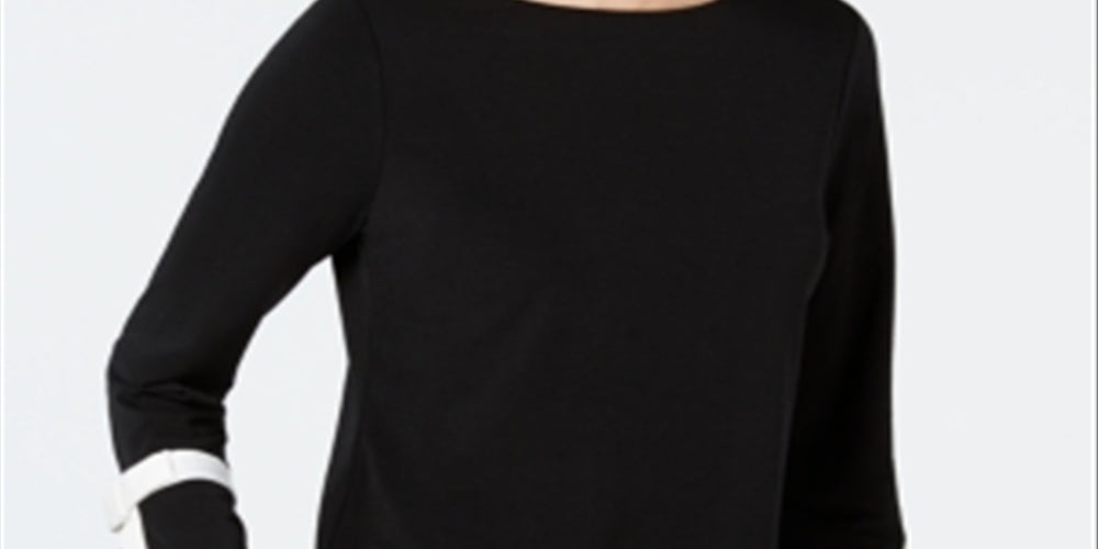 As gravatas coloridas nos punhos das mangas conferem um toque único a este top Charter Club de crepe sólido com decote redondo