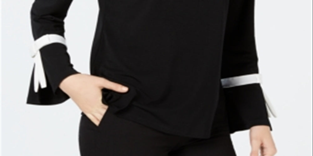 Blusa de crepe feminina Charter Club com manga amarrada, preta, tamanho médio