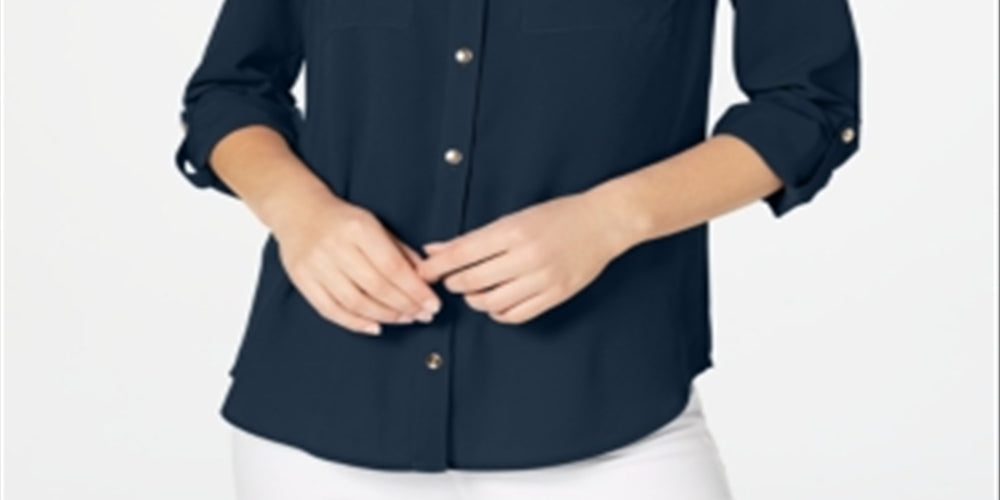 Camisa feminina Charter Club com dois bolsos, azul, tamanho grande