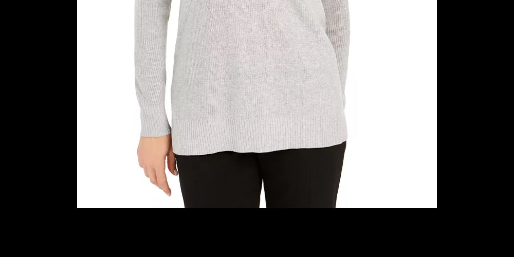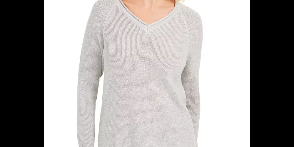 Suéter de malha feminino com decote em V Charter Club, cinza, tamanho grande